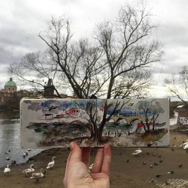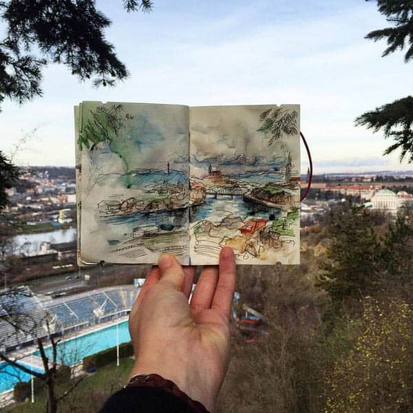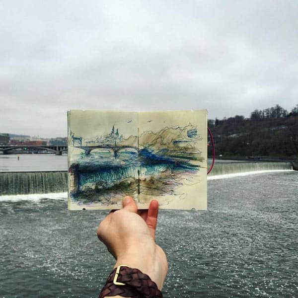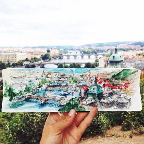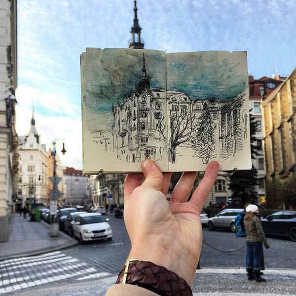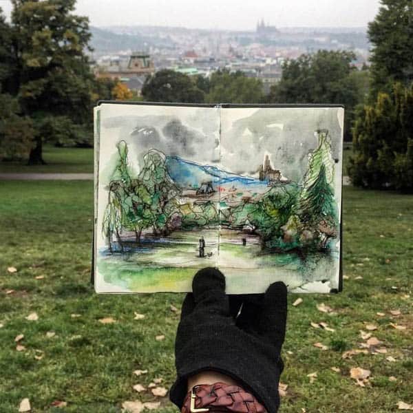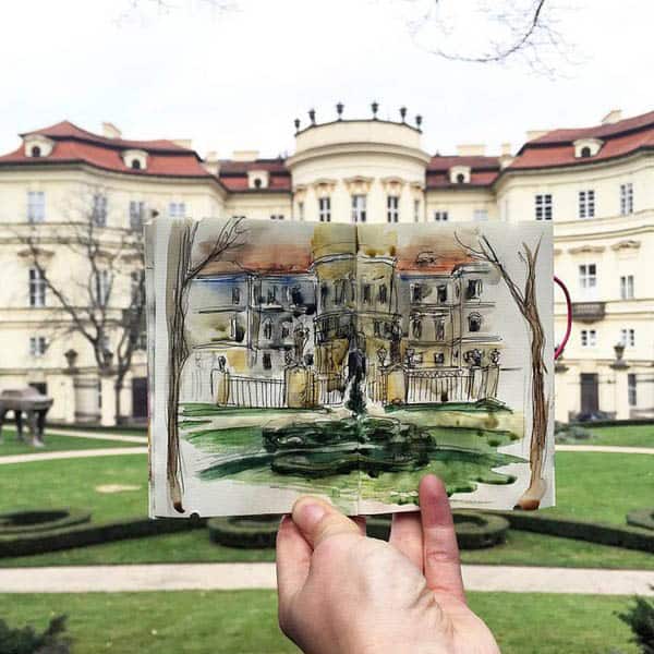 La artista letona Ieva Ozola, que vivió 3 años en Praga, ha creado una serie de bocetos únicos de la capital checa. Así que, aunque estés lejos, puedes disfrutar de las vistas de Praga a través de su increíble obra.