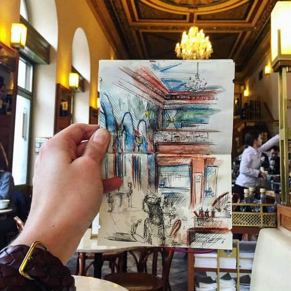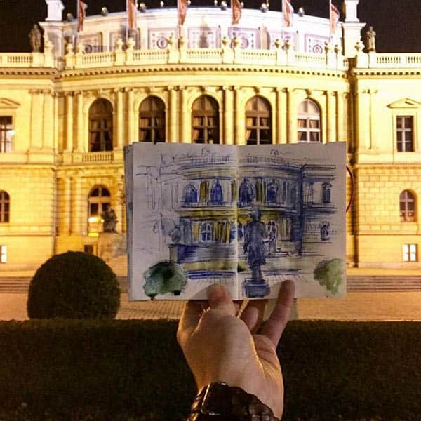 Con su amable aprobación, compartimos sus bocetos de Praga.
